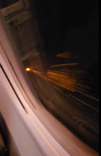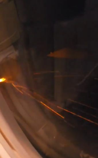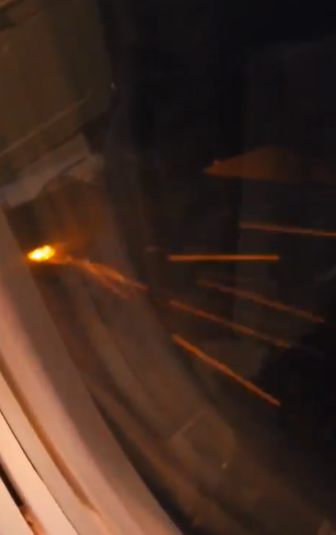 客機引擎不斷噴出火花。(互聯網)