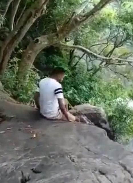 印男為型企岩拍照,失足墮瀑布瞬間沖走。(Twitter)