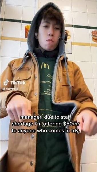 網媒「daily dot」報道,帳號「@slaytok1」的網民在TikTok分享,他當天從早上6時工作到晚上11時,賺到了「我一生中最容易賺的錢」。他稱,偶然之下,他到這間麥當勞由朝做到晚,但未有說明賺了多少,若「連踩」17小時,他就穩袋850美元(約6,646港元)。據稱,該麥當勞分店位於俄亥俄州哥倫布。