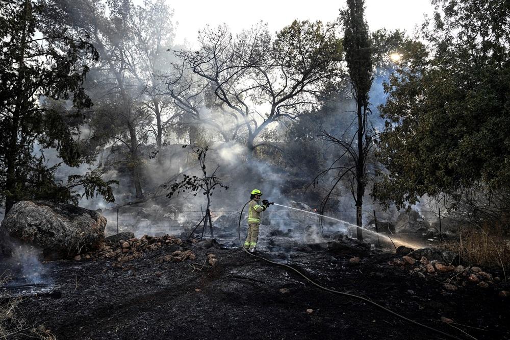 真主黨向以色列發射多枚飛彈,引發火警。(路透社)