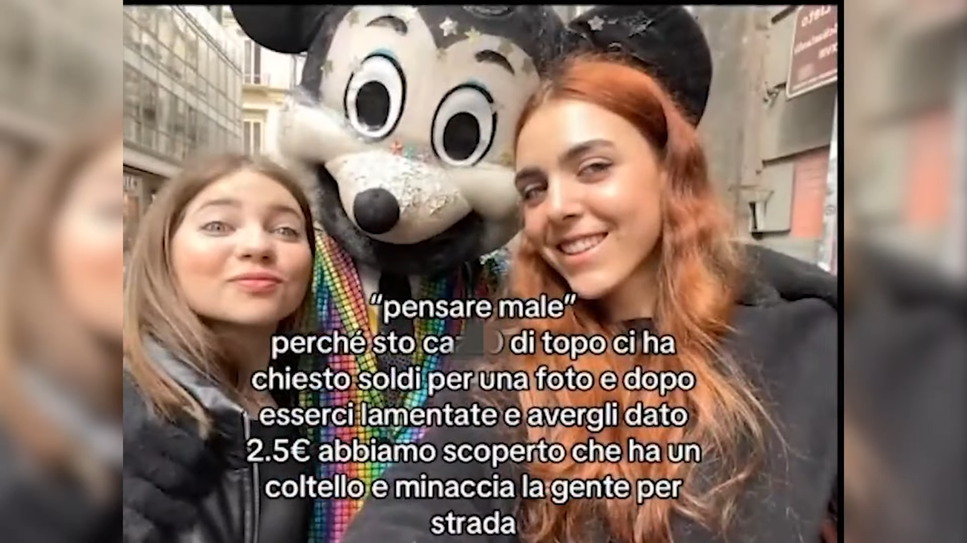 意大利拿坡里(Napoli)地區警方正在調查一名被稱為「魯波里諾」(Rubolino)的男子,他穿着迪士尼的米奇人偶裝,涉嫌在觀光景點托萊多街(Via Toledo) 強拉路人拍照並要錢,如有不從,他就會拿刀威脅。