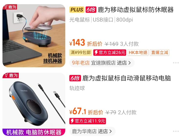 報道指銀行沒有表明有關員工是否「WFH」,但提到一些「滑鼠移動器」(mouse jigglers),是扮工的好幫手。「滑鼠移動器」可以自動令畫面上的滑鼠浮標郁動,本來是用作避免電腦進入休眠狀態,但報道指在疫情時這些配件愈趨流行,因其可以騙過公司監察員工電腦是否有活動的軟件,令公司以為員工有持續使用電腦工作。