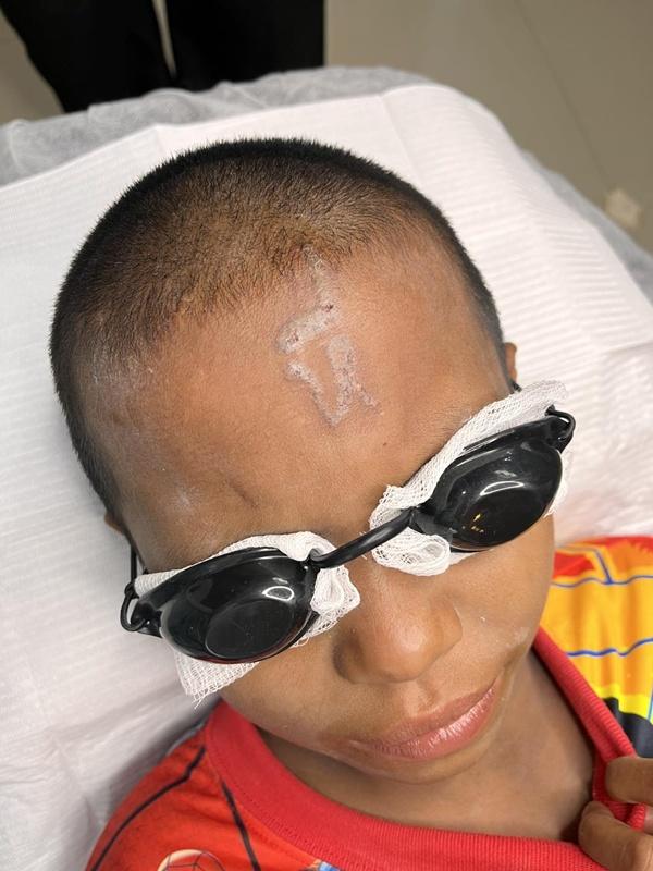 10歲童被欺凌額頭刺不雅字,善心紋身師助除紋身。(FB)