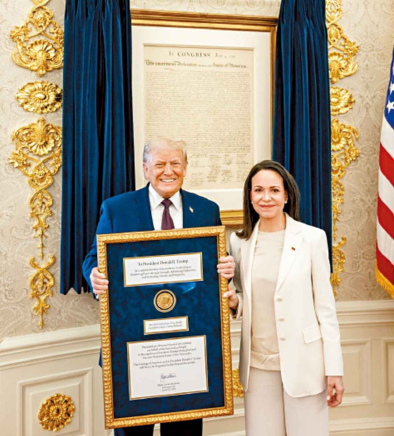 馬查多將和平獎轉贈特朗普。(路透社)