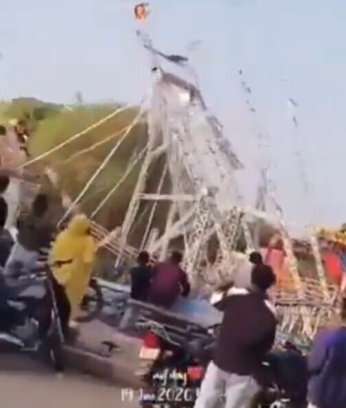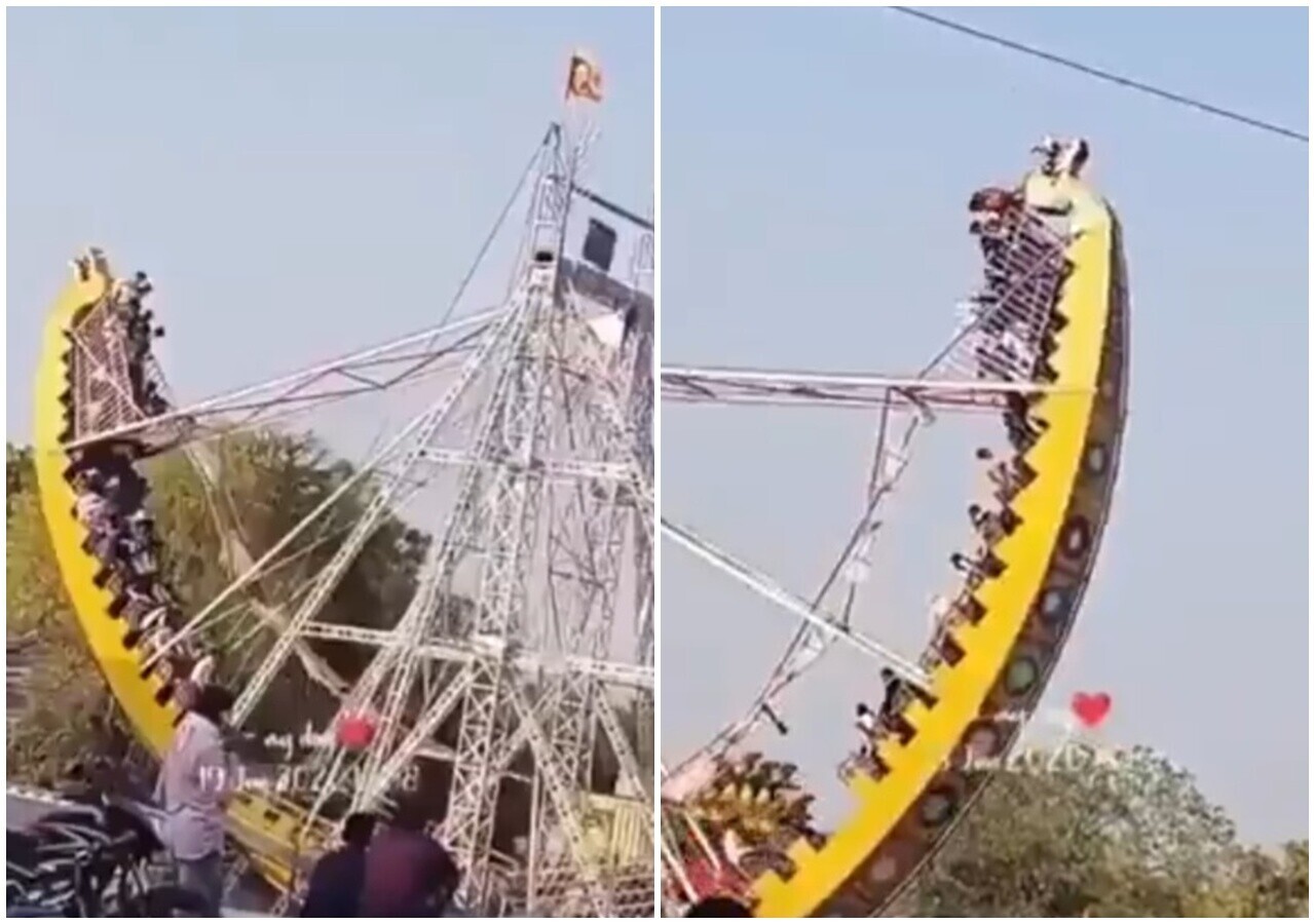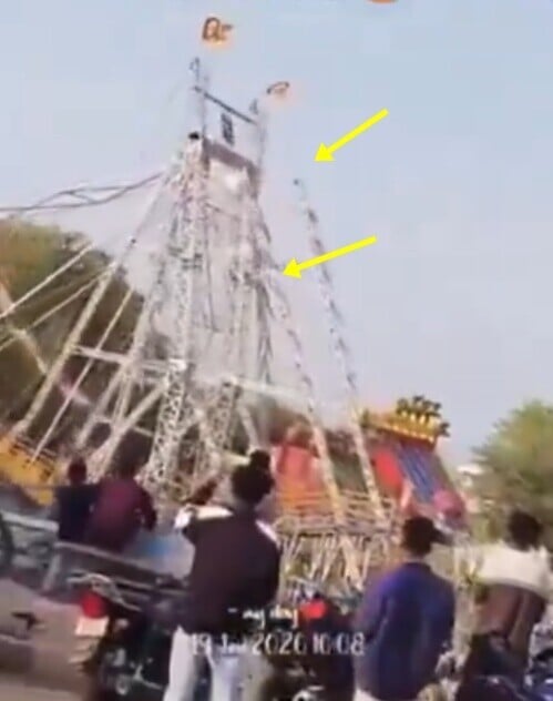 A giant “Dragon Swing” ride collapsed at a fair in Jhabua, Madhya Pradesh, India, injuring 14 students. The children suffered fractures and other injuries. pic.twitter.com/IZ4FJALTcW