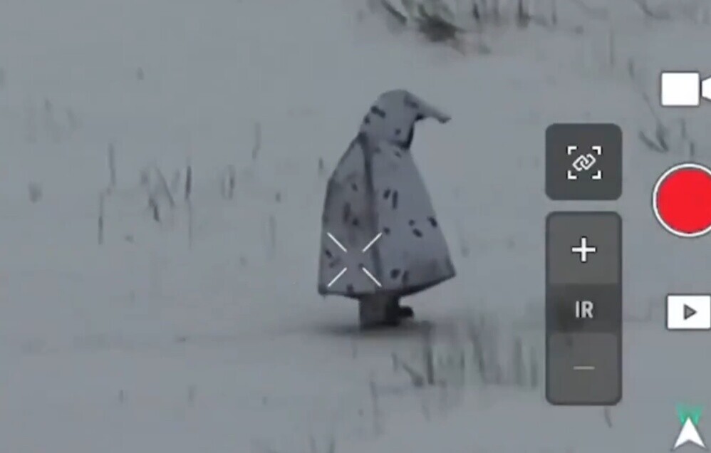 綜合報道,烏克蘭無人機操作員公布的第一視角畫面顯示,這名俄軍士兵披著熱阻隔斗篷獨自穿越雪地,斗篷下方露出雙腳,搖擺行走的姿態加上斗篷頭罩的輪廓,讓他看起來就像一隻帝王企鵝。無人機操作員鎖定他的位置後發動攻擊,將其炸毀。據指,俄方士兵一直穿著這種「隱形斗篷」,試圖避免被烏克蘭的熱感應無人機發現。