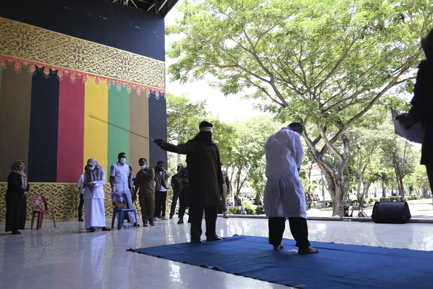 在印尼宗教保守的亞齊省,笞刑是違反伊斯蘭教法的常見刑罰,但一直受到人權組織的批評,他們認為這種刑罰十分殘酷。根據亞齊省的刑法,通姦將處以100下鞭打,飲酒將處以40下鞭打。在同場執行的刑法中,還包括一名印尼的伊斯蘭警官。