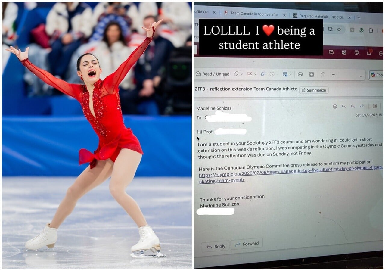 米蘭冬奧賽事近日進行得如火如荼,近日亦傳出一則有趣事件。加拿大花樣滑冰女將Madeline Schizas在比賽當天突然想起有功課未交,立刻寫信向教授說明情況,令她瞬間走紅,教授決定隨後亦曝光。