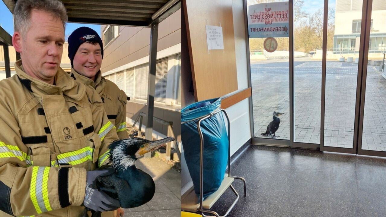 受傷的水鳥名為鸕鶿,又稱鷺鶿、川鵜、水老鴉、魚鷹。牠在2月15日出現在北部城市不來梅的威悉河畔醫院(Klinikum Links der Weser)的玻璃門前出前,嘴上被一個魚鉤勾住。