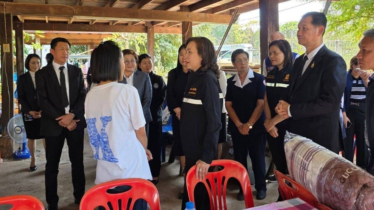 沙功那空府首長拉妮達率領官員前往慰問受傷男童。(互聯網)