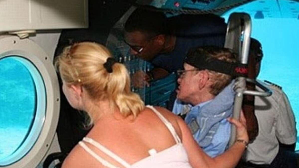 已故物理學泰斗霍金也捲入愛潑斯坦案,美國司法部公開檔案包括他與比堅尼女郎的合照。(互聯網)