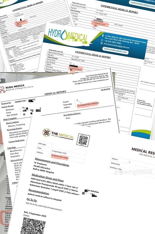 印尼峇里一間旅舍日前有一名25歲中國女遊客伏屍在床上,另有10人嘔血發燒昏迷,留醫深切治療部(ICU),疑似中毒。英國《每日郵報》日前稱,該名中國女遊客在9月2日半裸昏倒在床位上,身上只有一件藍色恤衫,無扣上鈕扣。