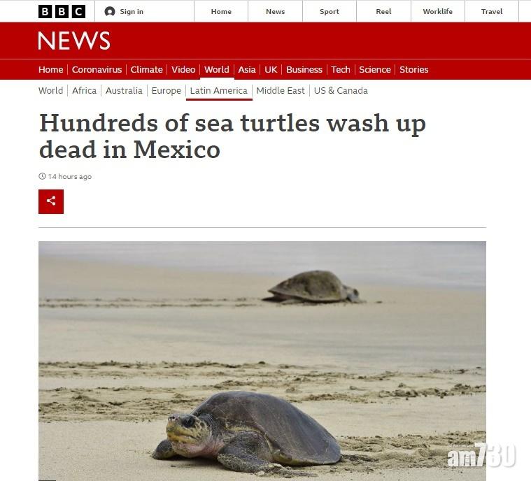 《英國廣播公司》(BBC)報道,墨西哥西部海岸的Morro Ayuta海灘發現至少300隻保育類欖蠵龜屍體,全部均為雌性,政府環境保護單位指出,初步判定這些海龜都是溺斃,極大可能是捲入被非法漁網或被棄置海外漁網纏住而溺斃,這些被棄置在外海的漁網被稱為「鬼網」,往往成了奪命海洋垃圾。