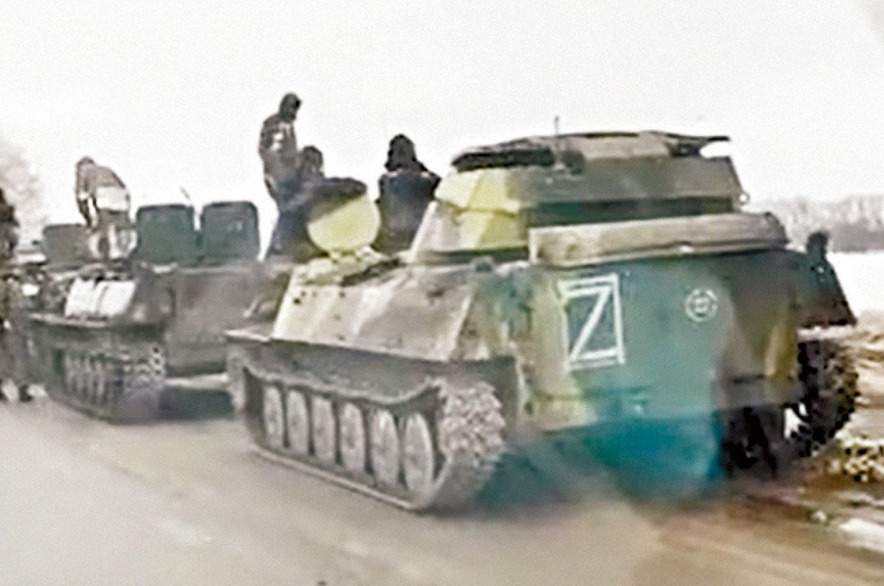 俄軍裝甲車畫有Z標記,相信是供友軍識別。(互聯網)