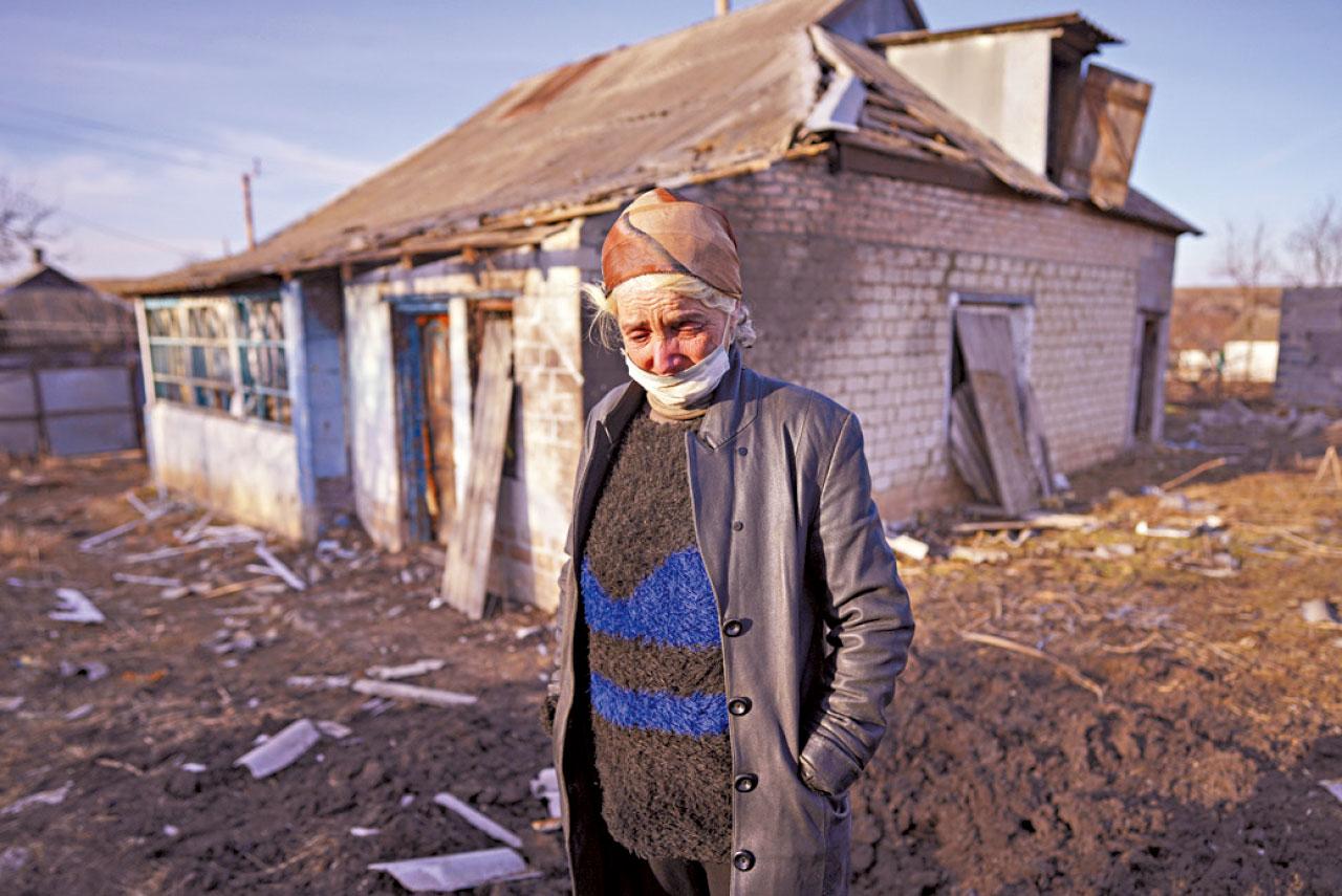 烏東一間民房疑遭親俄分離分子的炮彈擊毀,家園被毀屋主不禁落淚。(美聯社)