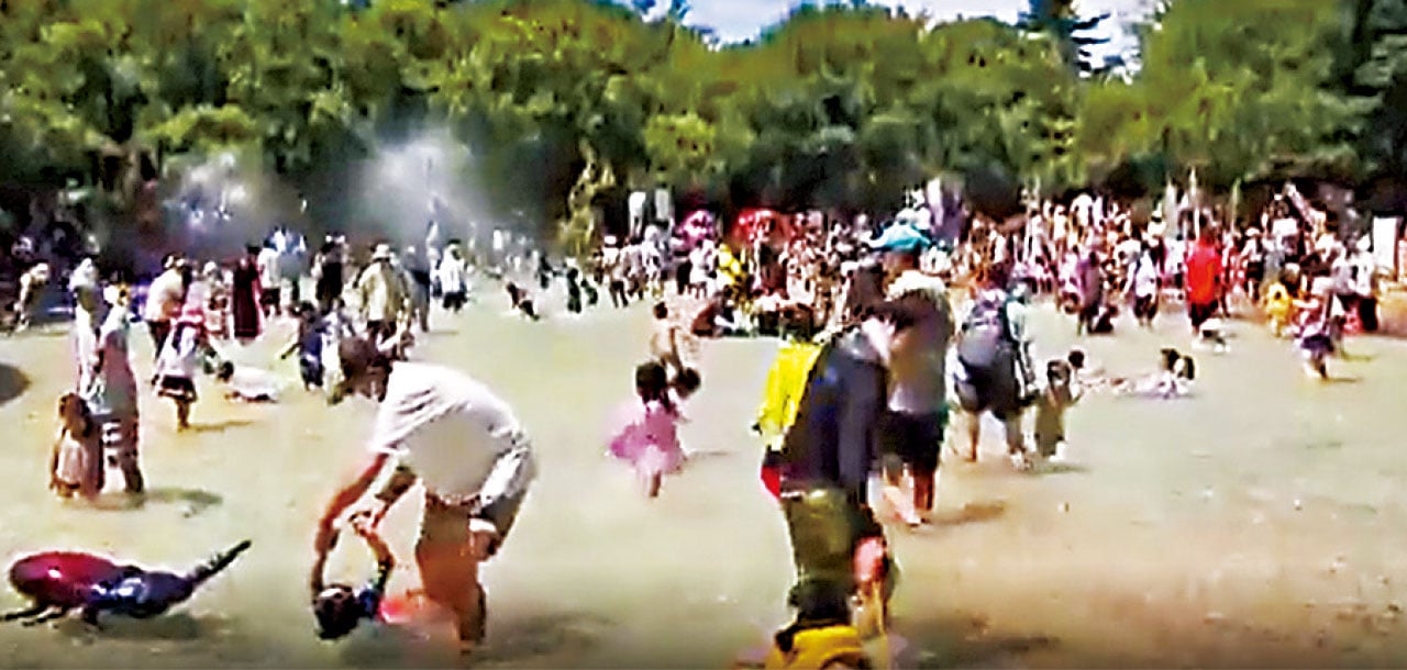 千葉縣昨氣溫約33度,已算「低溫」,縣內船橋市一公園玩水消暑者眾。(互聯網)