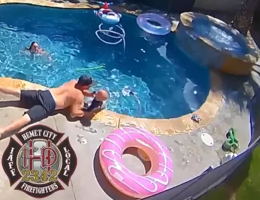 這名名叫佩提特(Zachary Petite)的消防員,當時正和一家人在泳池同樂,妻子和女兒已經進到泳池內,而當時1歲大的兒子科爾(Cole),本來還在岸邊玩蛙鞋,後來卻慢慢靠近泳池邊,疑似想下水玩。接着科爾就在身上沒有任何浮具的狀態下進入泳池,然而泳池的水深遠比他的身高超出許多,瞬間池水就將他滅頂。這時一旁的母親看到了,連忙游向前要將他救起,此刻一旁的佩提特看到,當即上前,大手一伸將他快速撈起,成功救下兒子。這驚險的畫面,全被佩提特家中監視器拍下,事後消防員協會引用這段影片發文,提醒民眾戲水時,務必注意身邊孩子的安全狀況,尤其小小孩溺水時,連拍打水面的聲音都沒有,很難察覺。