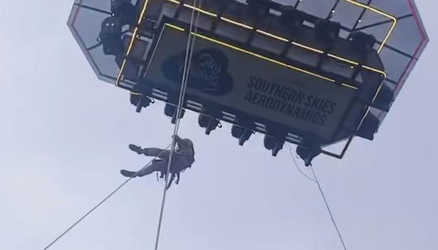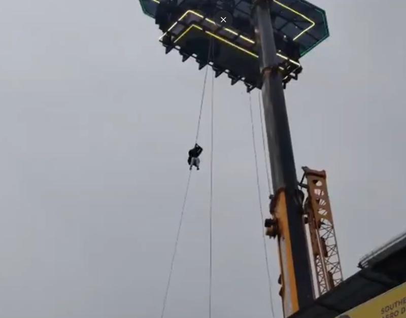 38米高空中餐廳故障,一家四口用餐被困3小時游繩回地面。(X)