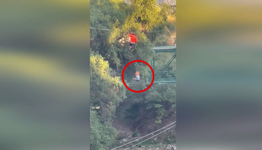 墨西哥一名6歲男童在遊樂園的高空滑索上意外掉落。(圖/翻攝自推特)