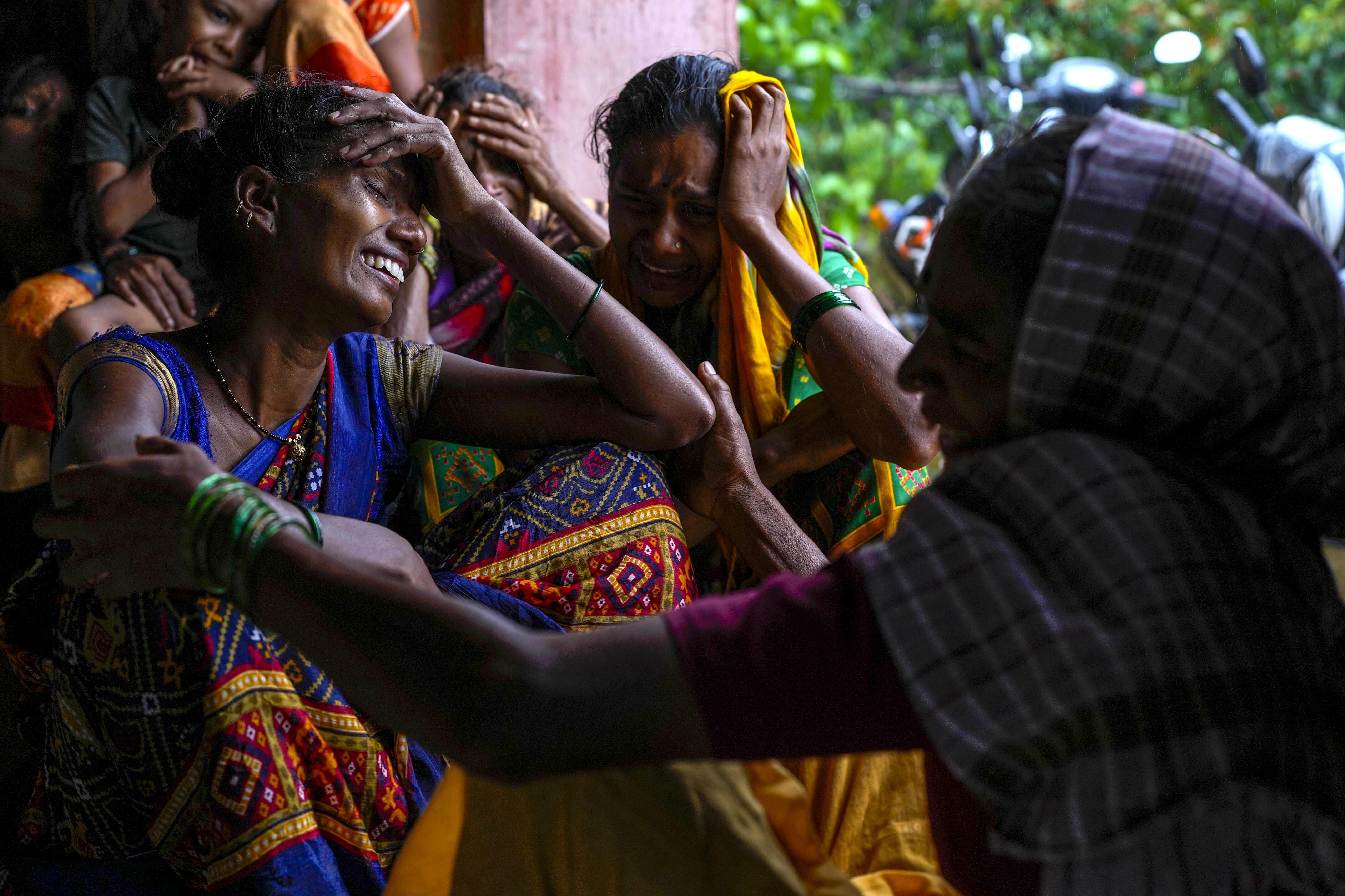 失蹤村民的家屬心急如焚,忍不住痛哭。(圖/美聯社)