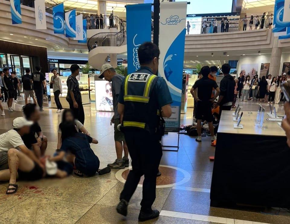 京畿道城南市書峴站附近百貨公司3日傳出隨機砍人事件,造成共14人傷亡。(圖/美聯社)