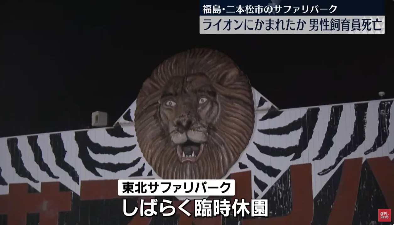 日本動物園傳出意外。位於福島縣二本松市的「東北野生動物園」,一名50多歲的男性飼育員被發現倒臥在室內的獅子籠位裡,送醫後確認身亡。28日下午3點30分左右,二本松市東北野生動物園的一名工作人員打電話報案稱一名男性飼育員倒在了獅子的籠子裡。據警方表示,該名男子為家住二本松市的53歲飼育員加藤健一,他在昏迷狀態下被送往醫院,但大約一個半小時後被宣布死亡。