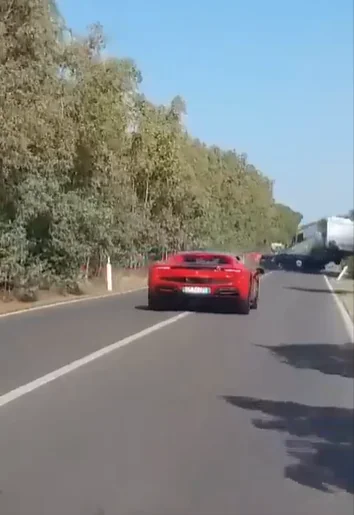 意大利法拉利和林寶堅尼爭相超車 相撞起火釀2死