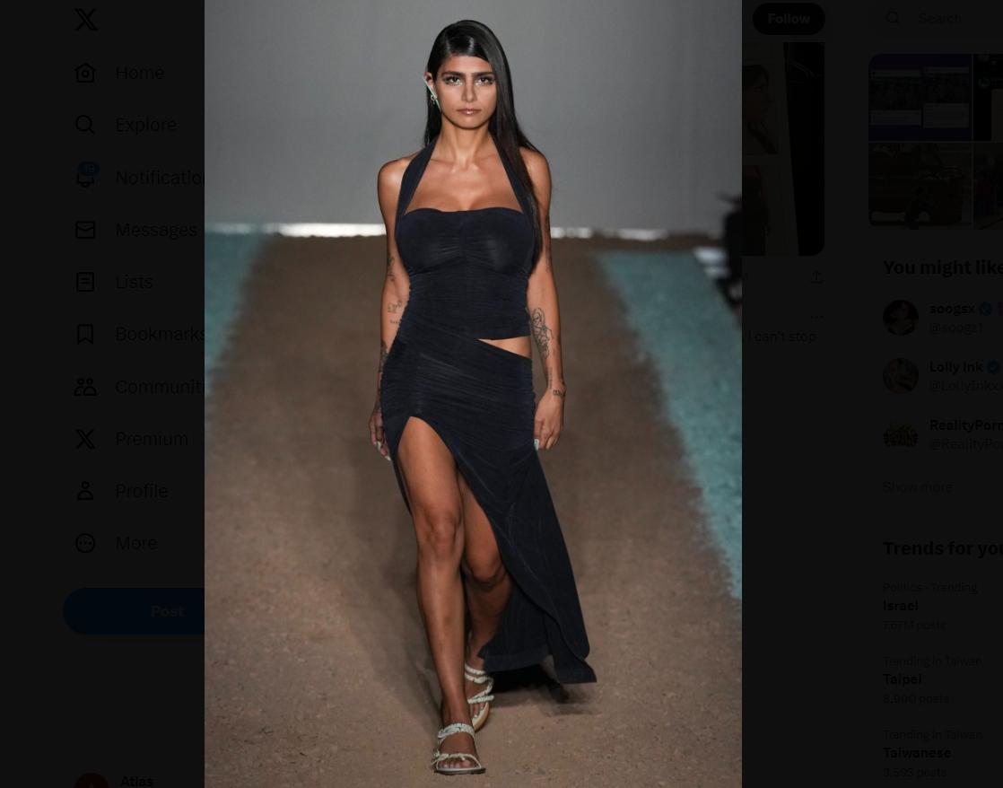現年約30歲黎巴嫩裔前美國AV女優米雅7日在X平台發文力挺巴勒斯坦,指「如果你看了巴勒斯坦的局勢,卻不支持巴勒斯坦,那就是支持種族隔離,歷史將會證明這一點。」相關言論惹來大批網民批評,儘管有網民懷疑她是因為之前拍AV受威脅才被迫表態,然而在2020年後改以線上形式發布內容的《花花公子》(Playboy)亦決定發聲明與她撇清關係。