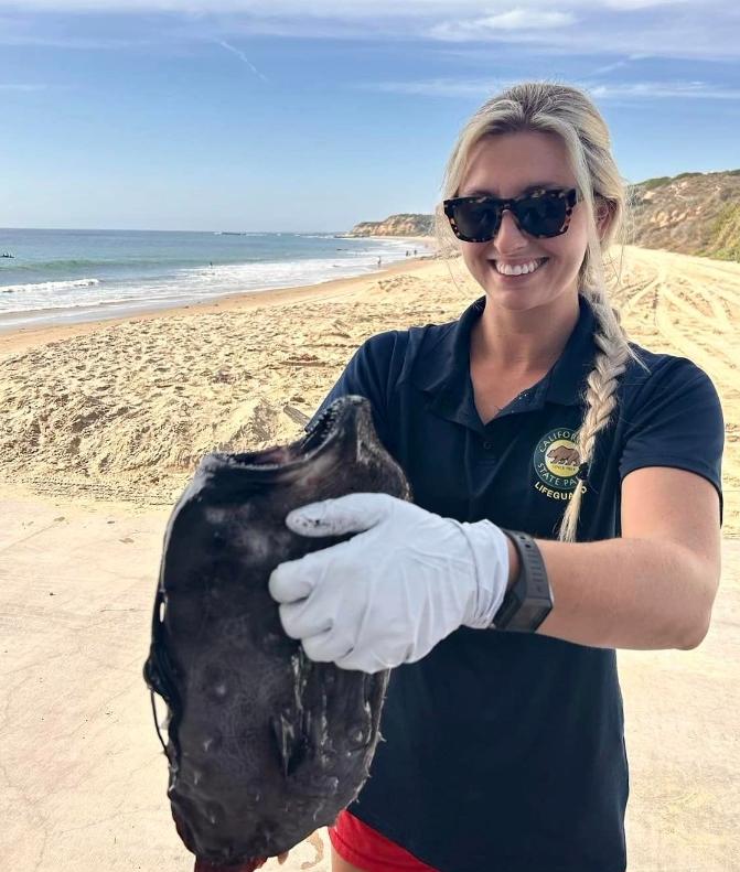 「13號星期五」被沖上岸的魚屍。(圖/California State Parks - Orange Coast District FB)