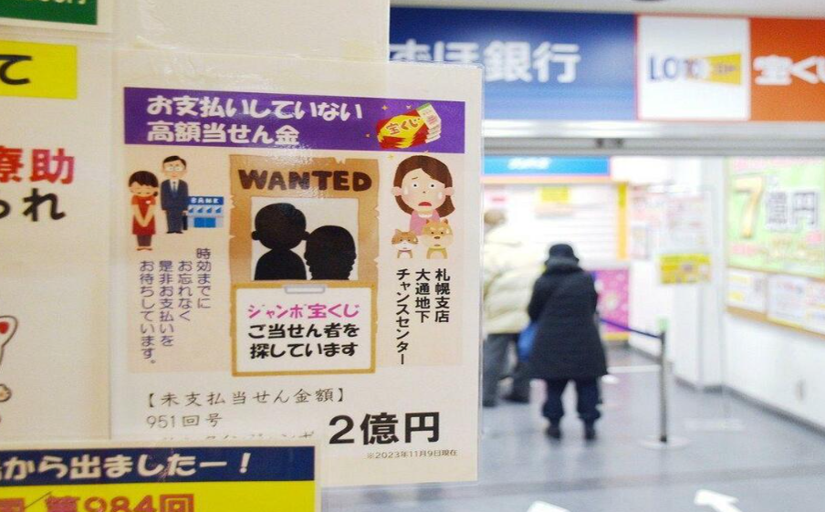日本一張去年開出的頭獎彩券迄今無人兌獎,彩金高達2億日圓(約1,041萬元港幣),不到一個月後過期。賣出這張頭獎彩券的北海道札幌彩券行張貼「通緝告示」,呼籲民眾在家尋找有沒有忘記對獎的彩券,「說不定你就是那個幸運兒」。