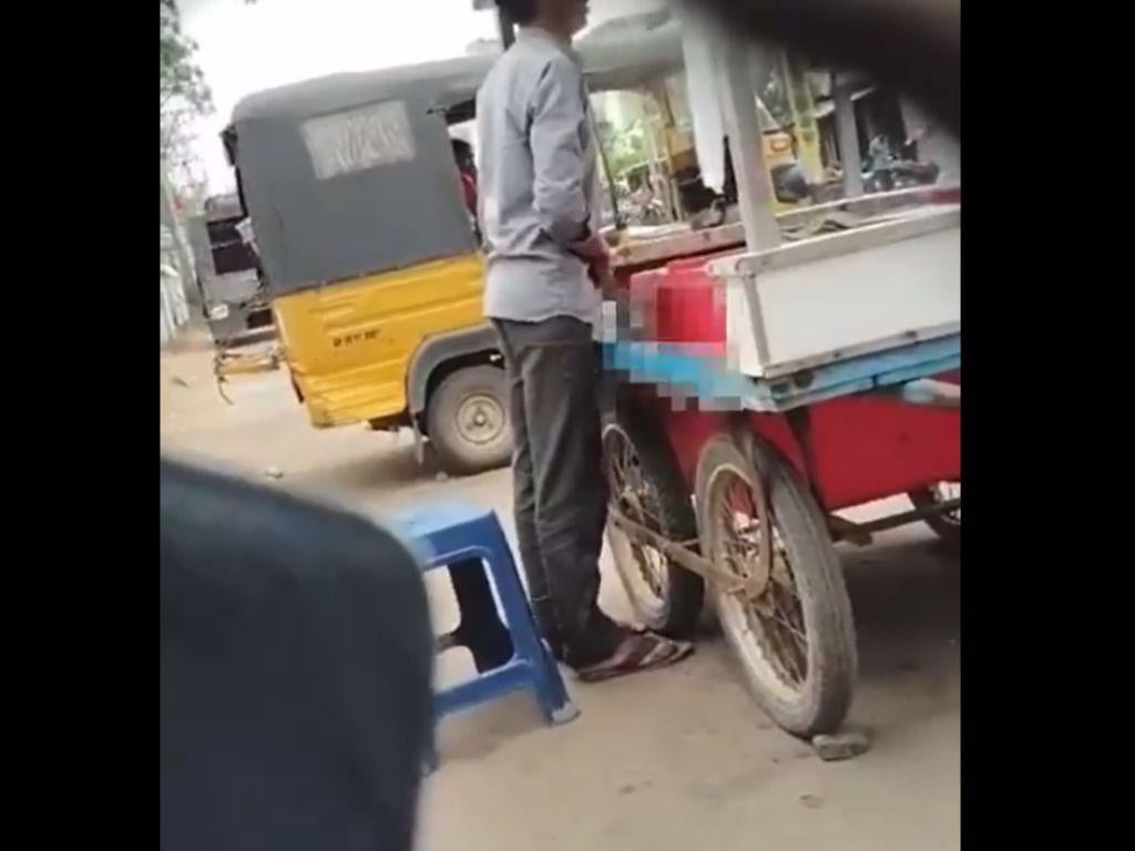 印度泰倫加納(Telangana)邦一名雪糕攤販老闆,在攤位後方忘情自瀆,疑似將精液噴到雪糕上,畫面被附近民眾錄了下來,這名老闆也被警方逮捕。