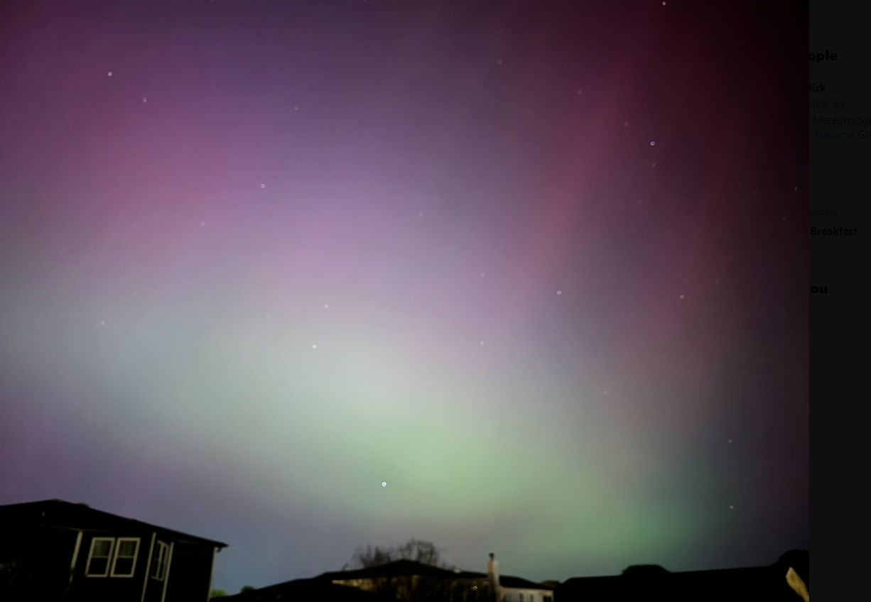 日本資訊通信研究所稱,本月8日至11日期間,太陽表面總共確認發生了7次大規模爆炸,稱為閃焰現象,由於爆炸導致太陽發出強烈的磁場,使得平時看不到極光的地區也都出現了極光。許多民眾也紛紛將難得一見的奇景,拍下分享到社交媒體上,笑說在家就能欣賞極光。