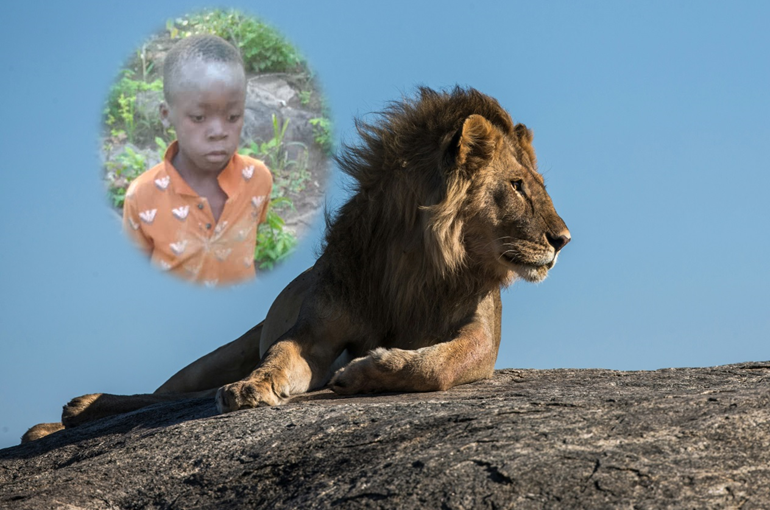 津巴布韋的一名8歲男孩(左)在獅子出沒的野生動物園獨自生存5天。(示意圖/翻攝自X@mutsamu&unsplash)