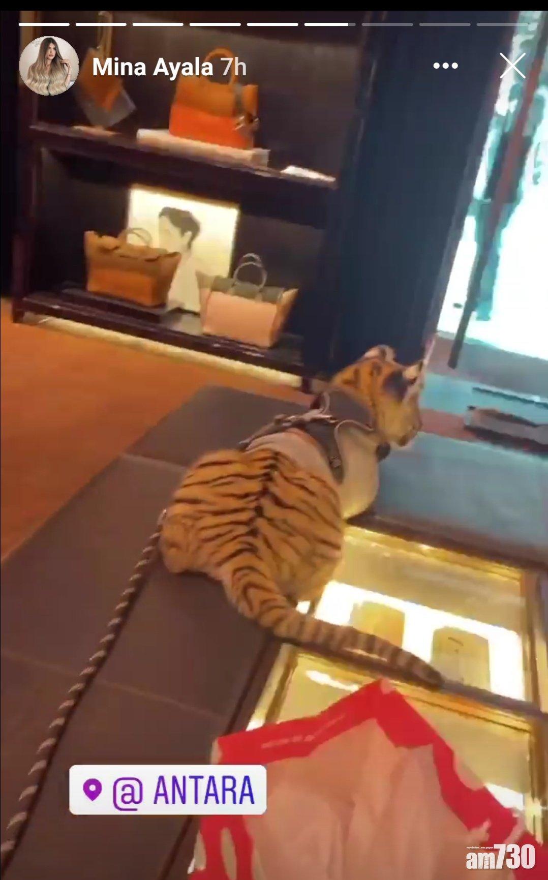 主人阿亞拉po出寵物虎在商場的限時動態。(互聯網)