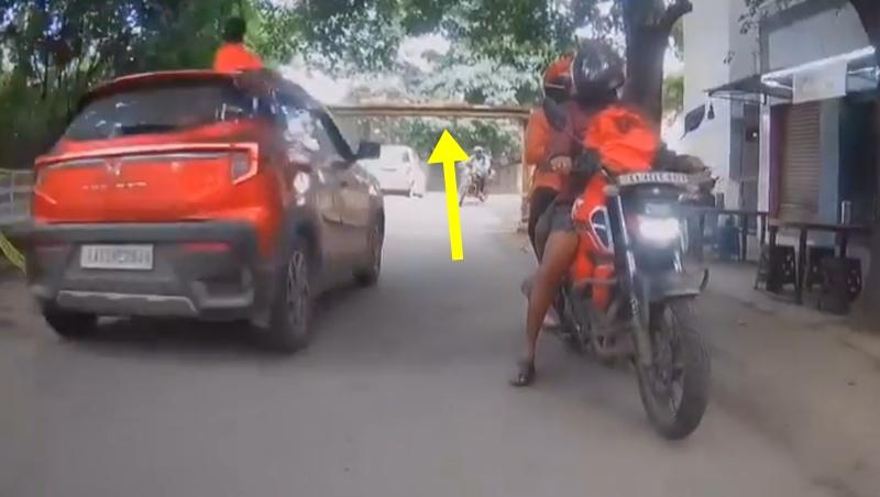 印度卡納塔卡邦首府邦加羅爾一名8歲男童,日前跟著家人乘私家車出遊期間,將上身探出汽車天窗吹風,卻無留意到道路前方限制高度的鐵架,經果額頭直接硬撼鐵架後隨即倒下,後腦又撞到車頂,之後退回車廂內,十分危險。