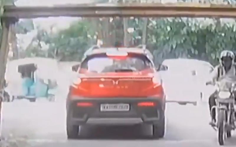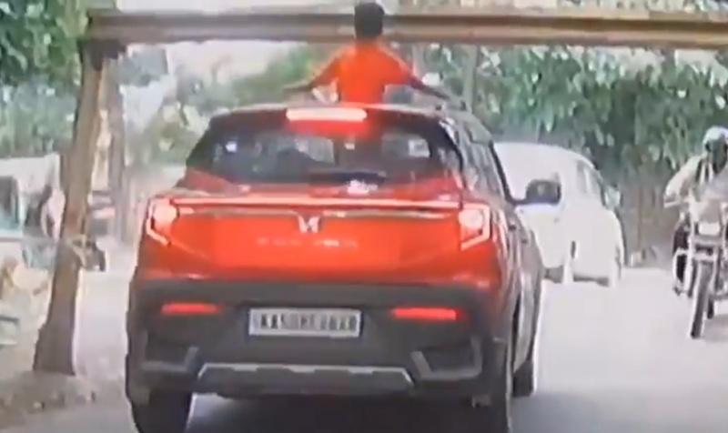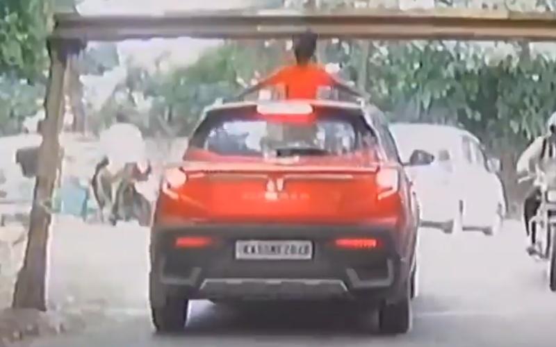 कर्नाटक के बेंगलुरु में एक कार के सनरूफ से झांक रहे बच्चे का सिर लोहे के बैरियर से टकरा गया,