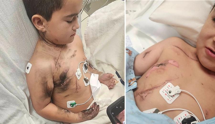 美國8歲男童Lorenzo Lopez的身體和手因觸電燻黑。(互聯網)