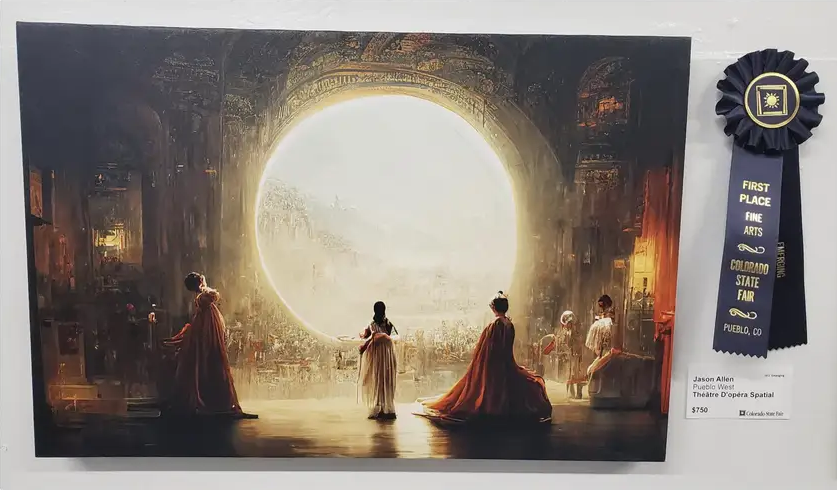 美國科羅拉多州的39歲桌遊設計師艾倫(Jason M. Allen),利用AI程式Midjourney,生成3幅數碼作品,參加「數碼藝術/數碼修飾攝影」組別的比賽,該組別訂明「創作及表達過程可以使用數碼科技」。艾倫獲獎的畫作名為《太空歌劇院》(Théâtre D'opéra Spatial),把文藝復興時期風格跟科幻結合,充滿超現實感,結果擊敗另外10名參賽者,為他贏得300美元獎金。