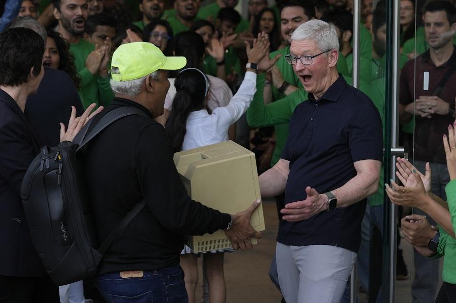 美國蘋果公司(Apple)於印度金融中心孟買開首間零售旗艦店,行政總裁庫克(Tim Cook)今日主持開幕儀式,這是他7年來首次踏足印度。約300人排隊「朝聖」,部分人更在前一晚到來,庫克親民地與眾人自拍,當一名果迷抬著一部蘋果1987年出產的電腦Macintosh SE走到他面前時,庫克見到O嘴超驚喜,真情流露。