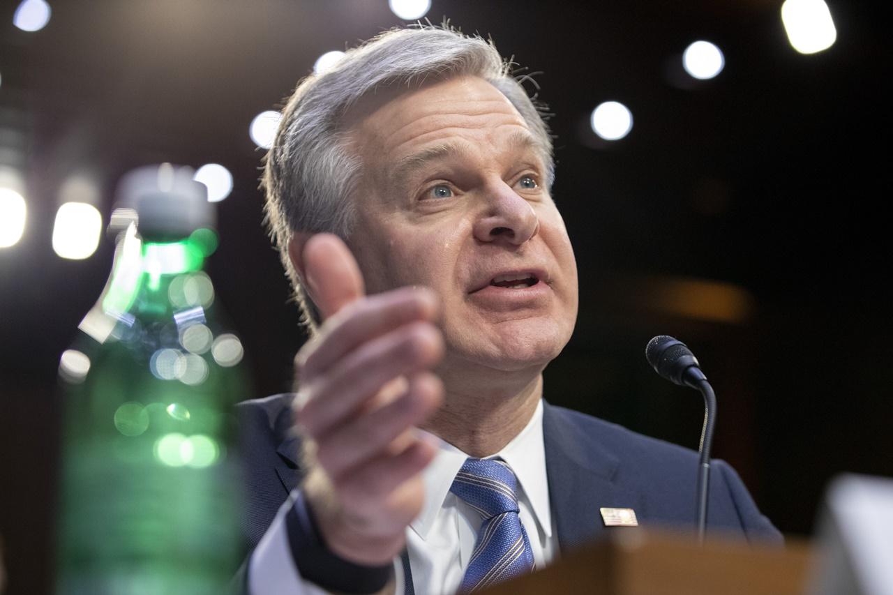 克里斯托弗雷周三(8日)出席美國參議院情報委員會全球威脅聽證會。(AP)