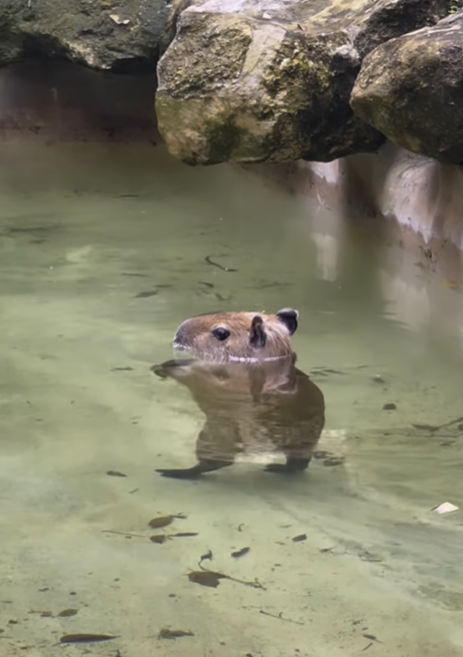據《NBC 6 South Florida》報導,ZWF動物園(Zoological Wildlife Foundation)日前在社群媒體貼出一段影片,畫面中的水豚君在水中移動。因光線折射原理導致下半身視覺上變得短小,看起來就像雙腳於水中緩緩步行,彷彿跳著傳奇巨星米高積遜(Michael Jackson)的著名舞蹈動作「月球漫步」(Moonwalk)。