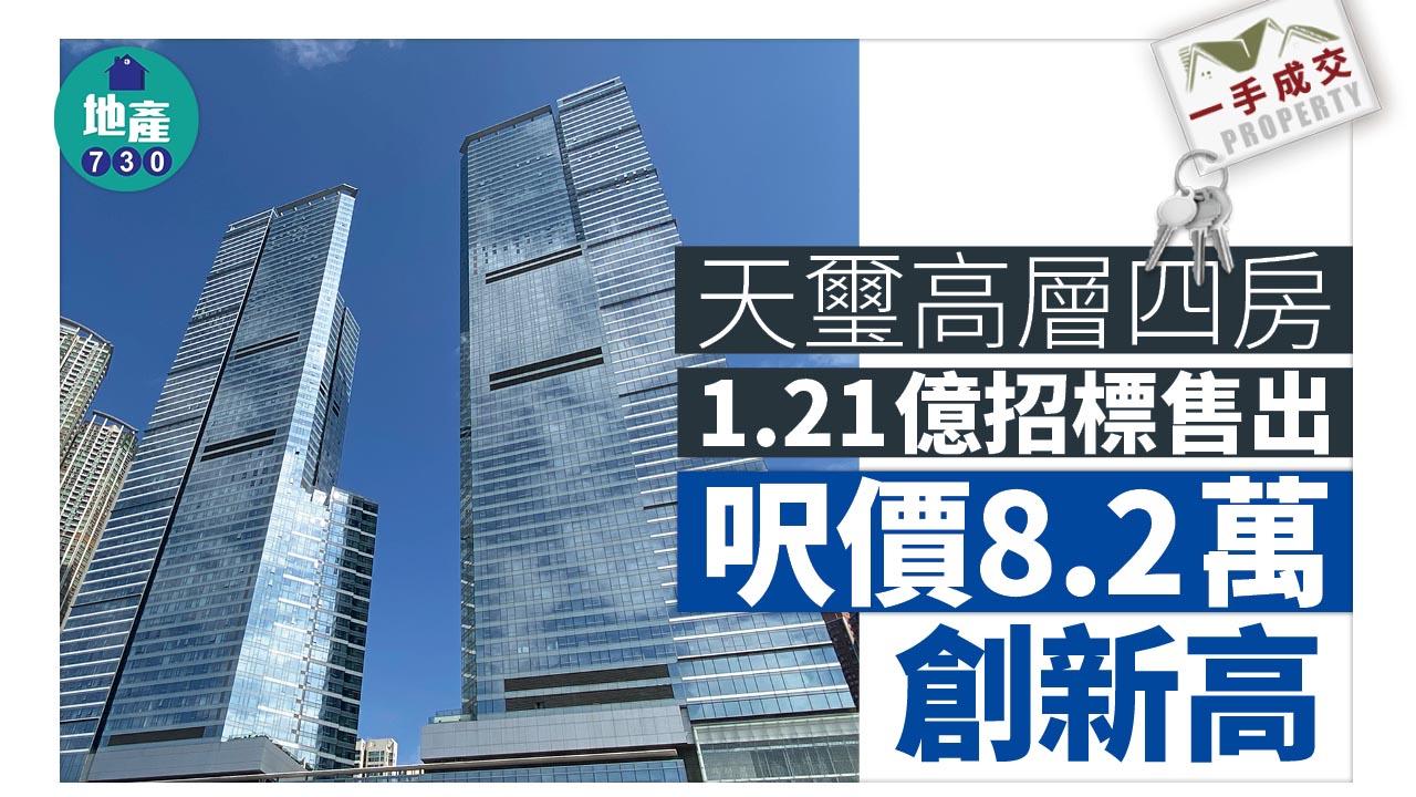 據成交紀錄冊顯示,天璽天鑽璽86樓A室,實用面積1,481方呎,屬四房雙套連儲物房間隔,連1個車位以約1.21億元招標售出,呎價達82,000元,打破去年9月另一四房戶以呎價81,300元成交的屋苑一手呎價紀錄。