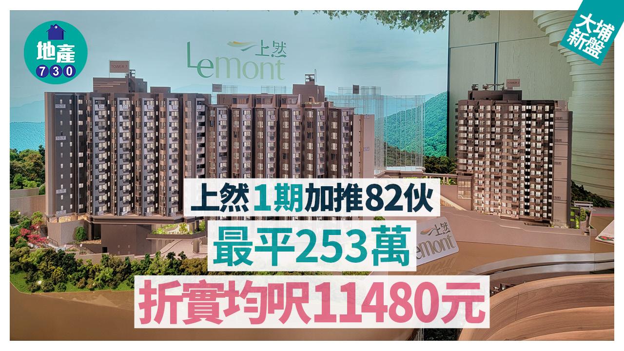 上然1期加推82伙 最平253萬 折實均呎11480元|大埔新盤