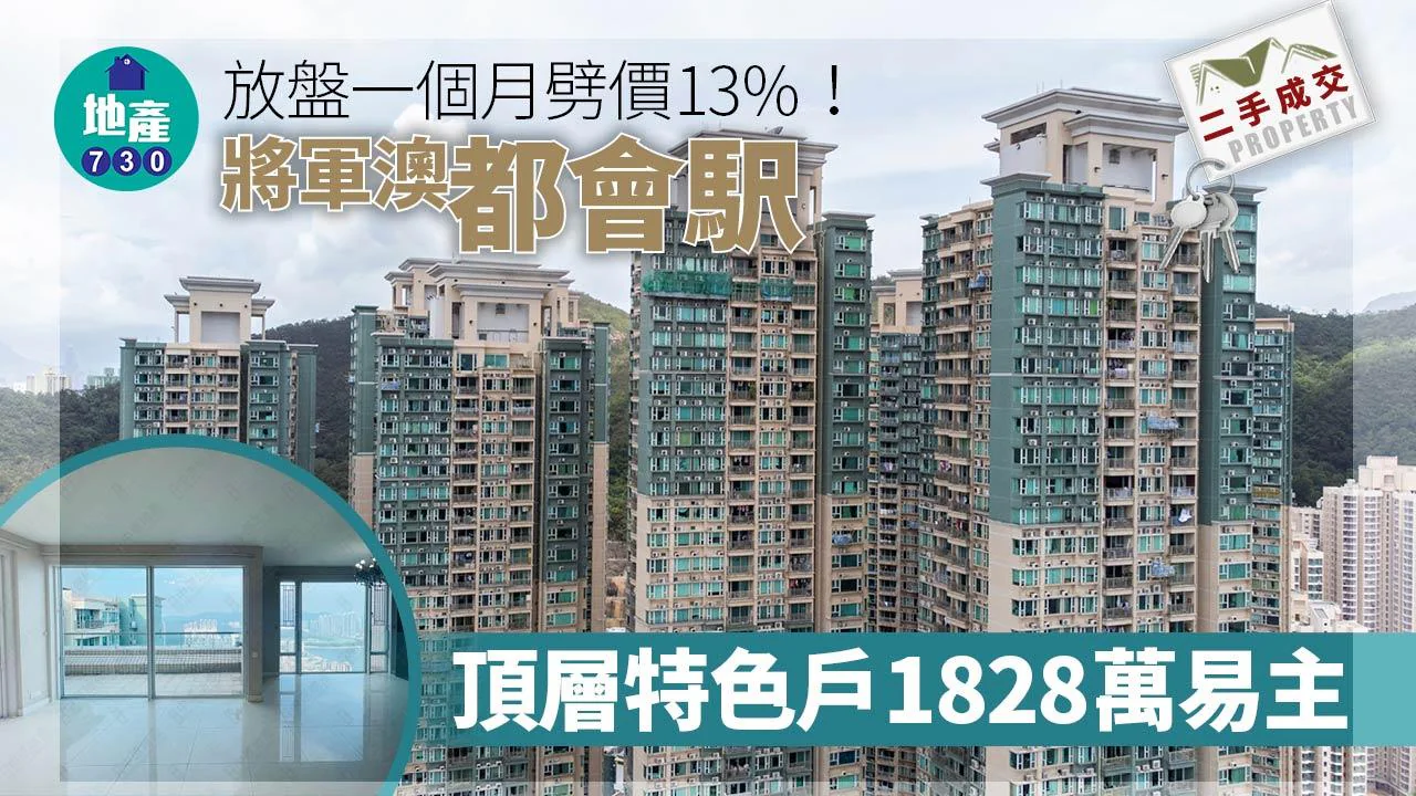 二手樓成交|放盤一個月劈價13%!將軍澳都會駅頂層特色戶1828萬易主