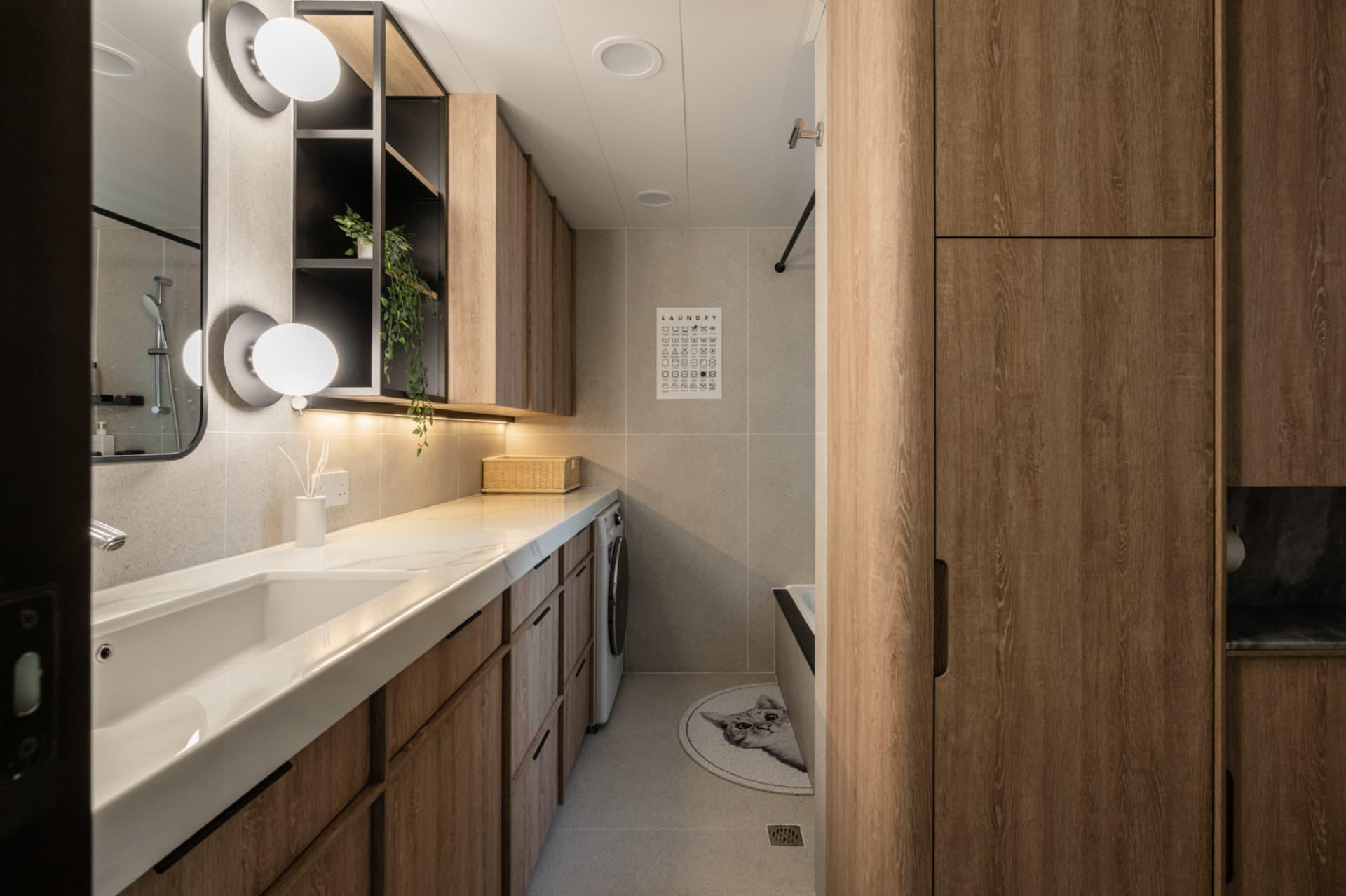 這個位於深井近800呎的單位屬於一對夫婦和他們的三隻寵物所擁有。身為忠心耿耿的貓奴,屋主要求居家環境以主子們的需求為先。而鑑於屋主夫婦特別鍾情於日本無印風格的簡約設計,本地設計公司MAD Studio Limited總監Alvin Cheng決定為他們打造一個既人性化,又能兼顧主子生活的日式家居環境。Alvin表示:「我們強調寵物傢具和整體家居風格的協調性,即使抽走寵物傢具,空間亦不會顯得突兀。」