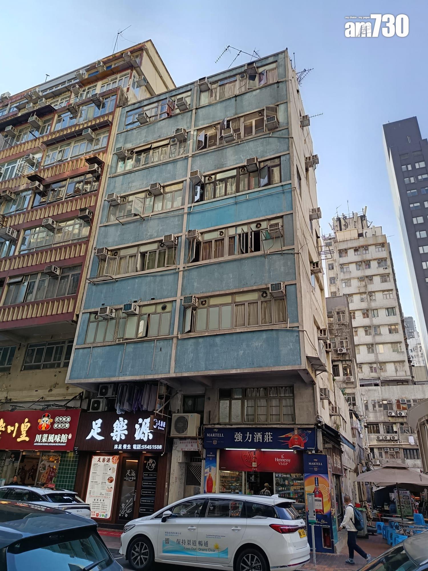是次放售物業位於佐敦吳松街41至43號,為樓高6層的全幢商住大廈。(中原工商舖提供)