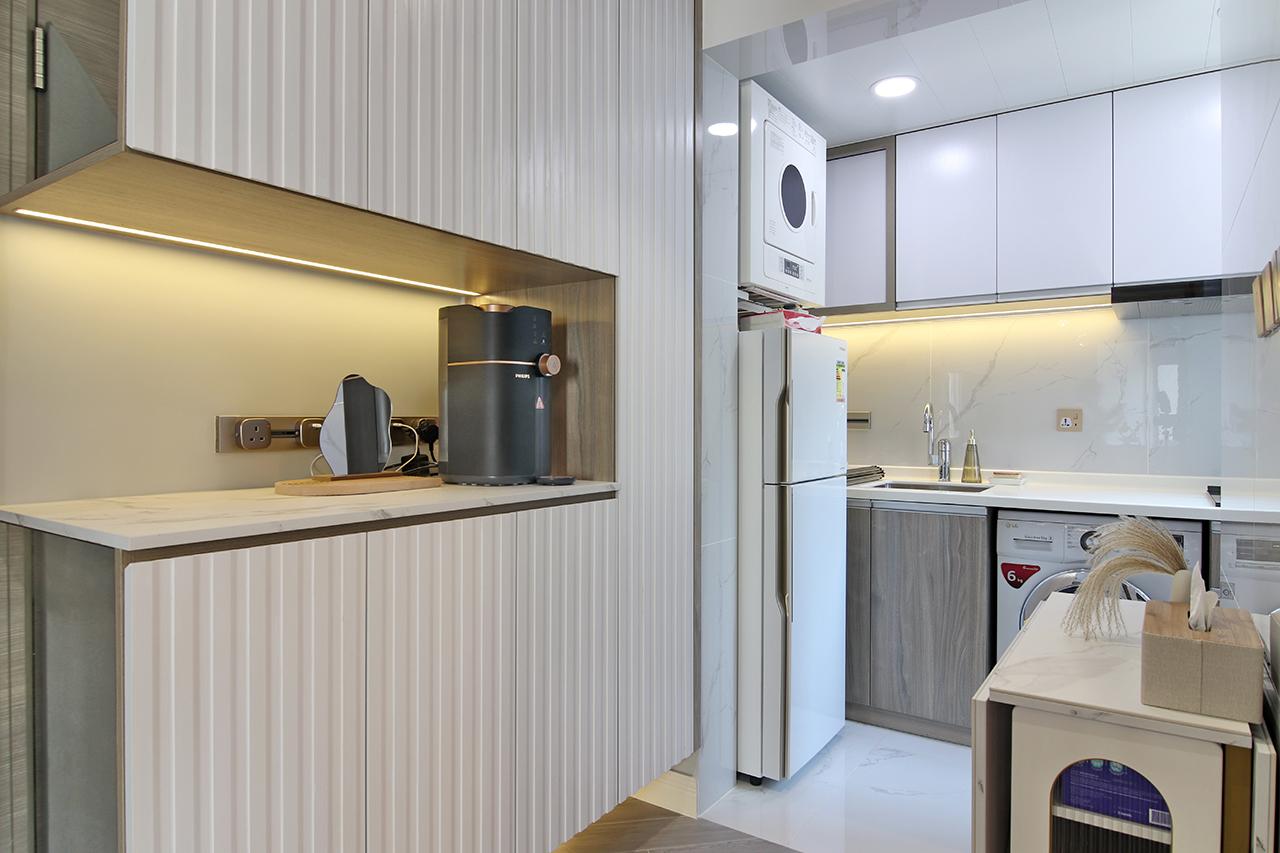另外,日常長期使用之下難免會出現污跡,廚房及浴室安裝的鋁質假天花,通常都是一條條砌成的,非常容易取出,萬一發現沾到污物,都可以取出清潔,而不用動用裝修師傅,另外鋁質天花本來就有抗污的能力,其實日常只需要簡單抹布做清潔即可,非常方便。