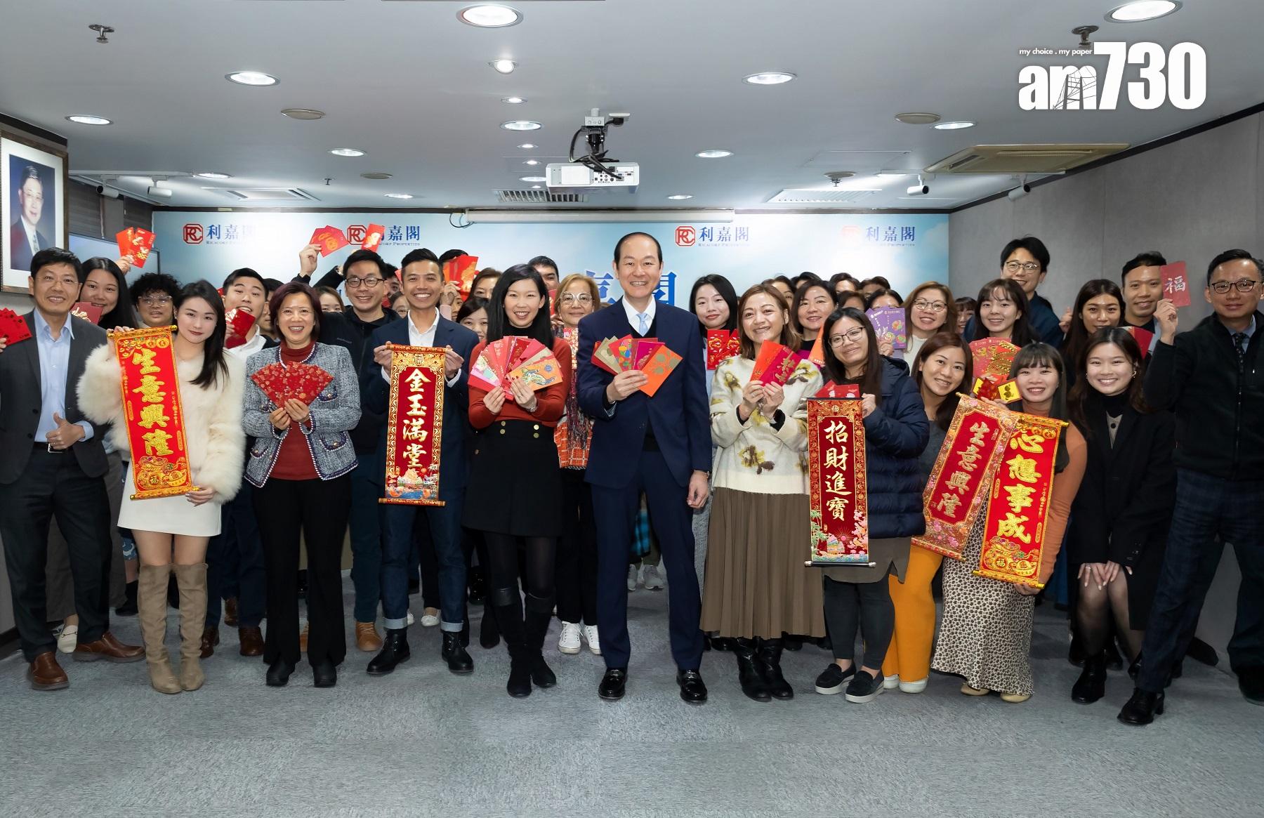 利嘉閣地產主席施慧勤及利嘉閣地產總裁廖偉強向總行近百位後勤同事大派利是。