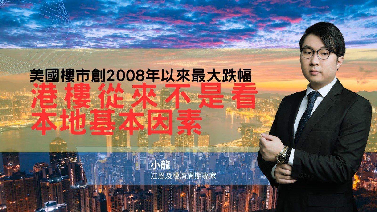 近來有很多人對香港樓市很樂觀,但是另一邊美國樓市總值去年大幅縮水2.3萬億美元(約17.94萬億港元),創2008年以來最大跌幅,多個大城市如三藩市等地的樓價都大幅下滑。香港樓市從來不是看本地的基本因素,因為以2003及2008年為例,都不是供應及利率等因素而令到樓市下跌,相反是週邊經濟轉差令到樓市下跌。這表明香港樓市和美國樓市都受到外部因素的影響。而美國或者會進入衰退,哪麼港樓會如何?