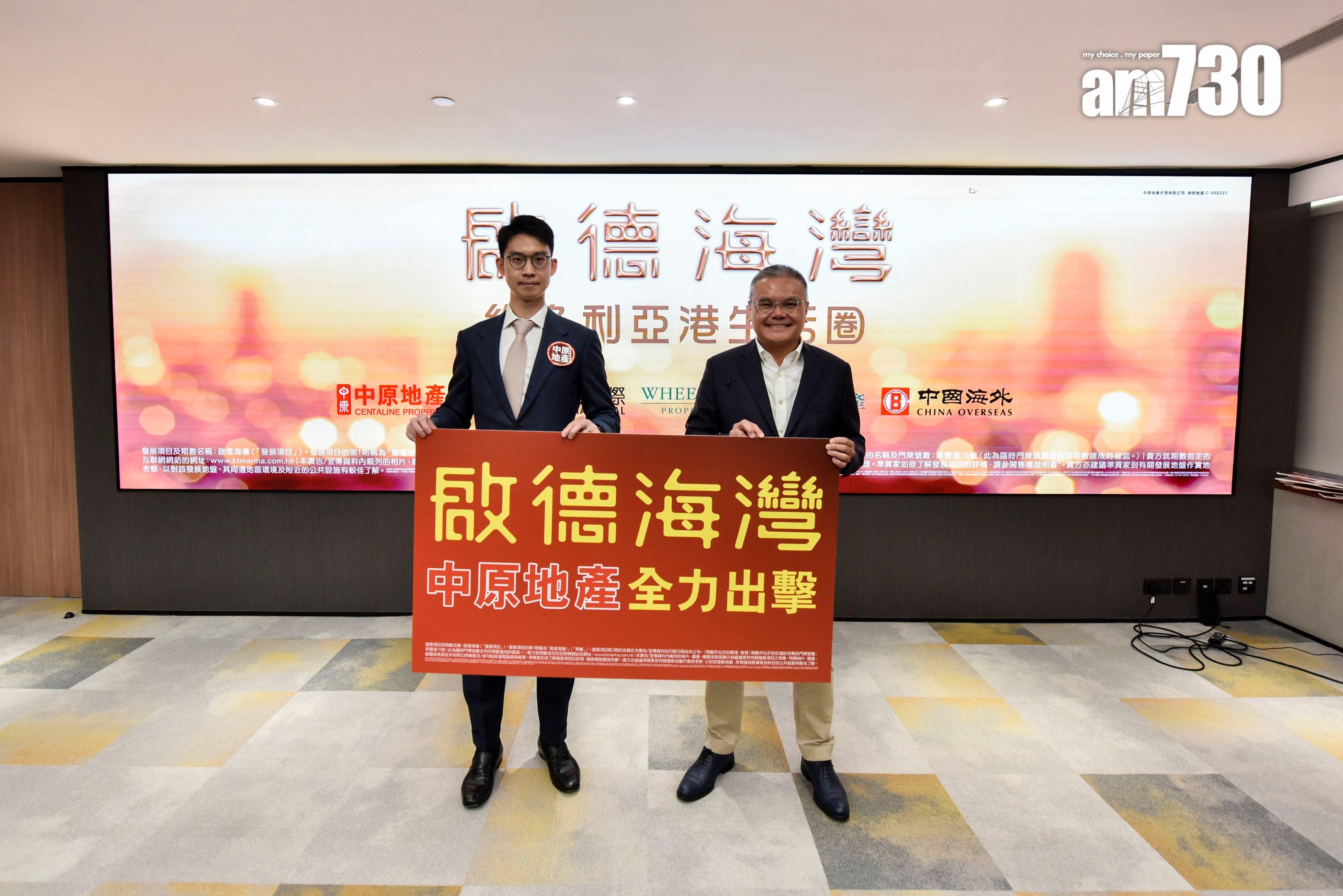 市區焦點大型新盤、嘉華國際(173)、會德豐地產及中國海外(688)合作發展的啟德PARK PENINSULA「啟德海灣」,部署月內上載售樓說明書及推售,嘉華國際營業及市場策劃總監(香港地產)温偉明今日早上親臨中原地產月會,詳細講解「啟德海灣」的特點與優勢,下午再到訪中原地產總部,並與中原集團行政總裁施俊嶸合照。
